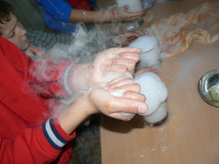 Štvrtáci a zábava so suchým ľadom